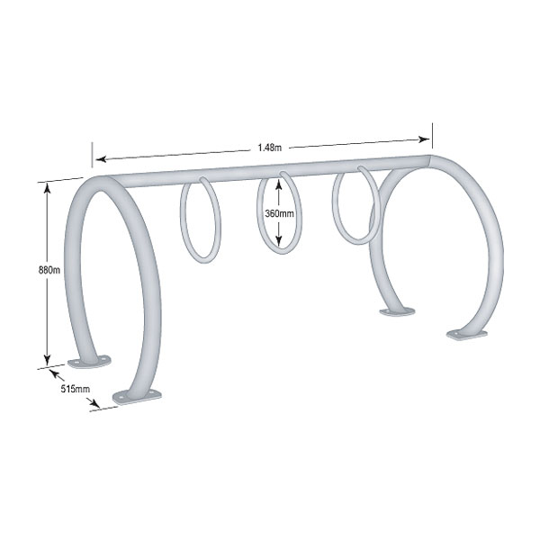 Our Saturn series bike rack caters for higher density bike parking. The design allows bicycle to access the rack from both side, but can equally be used as a single sided rack should you need it closer to a wall. It is available in two standard sizes but can be custom made to suit your requirements.