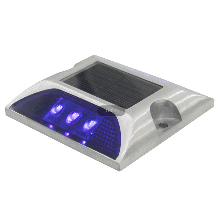 Solar Road Markers or lane markers are a low-cost, self-contained, rechargeable, LED illuminated marker. Visible up to 800 metres they are used to reduce speed or signal driver attention to common features, hazards and dangerous bends on our roads. Commonly used on sharp corners, pedestrian refuges, traffic islands and dividing lines. The aluminium casings are rated to 10 tons, single or dual sided in static or flashing modes providing clear and visible traffic guidance in all weather conditions. Multiple colour options are available. These units require no maintenance and generate no ongoing operational costs.